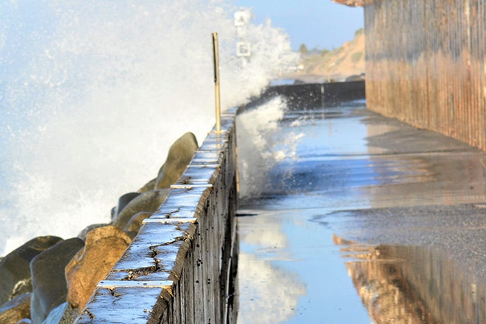 As a waste storage location, SONGS is highly risky. Situated along the shoreline and in an earthquake zone, it’s vulnerable to destructive seismic land shifts and tsunamis. Photographs show waves already splashing near the top of its seawall at high tides.